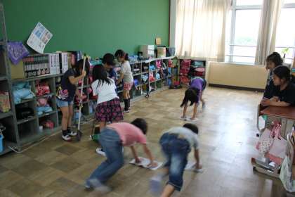 そうじ時間もぞうきんがすり切れるくらい床を磨いています。