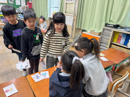 国語科の「ものの名まえ」では、各お店屋さんに分かれて、