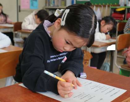 どの子も百点満点の名人に向けて、真剣な表情で頑張っていました。