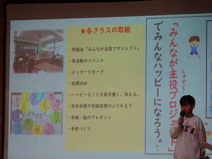 友達のいいところを伝えたり、みんなが主役になれるクラス遊びを考えたりした取組が紹介されました。この取組を今後も続けたり、広げていってほしいと思いました。
