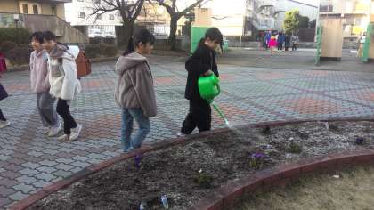環境栽培委員会では、毎週花の水やりを頑張っています!