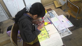 紙粘土に色を練り込んで作ったり、お話の主人公や中心となるものが目立つように大きさや配置を工夫したりと、考えながら一生懸命つくる姿が見られます。作品は、3月の図工展で、展示する予定です!!