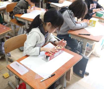 用意した箱を見ながら、どんな形をしているのかな、特徴は何かな、