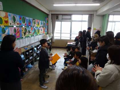 多くのクラスで、この1年間で学習してきたことの発表が行われていました。自分が頑張ったことや今頑張っていること、これまでに支えてくれて人への思いなどについて、みんなの前で緊張しながらも、しっかりと発表できていました。