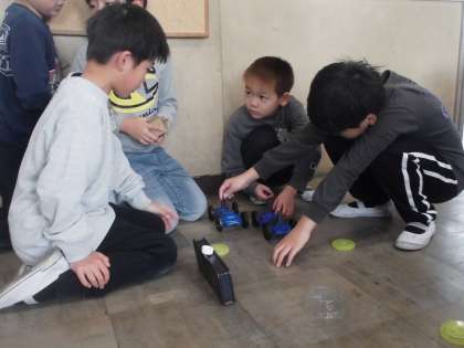 磁石のしりぞけあう力で車が動いたり、引きつく力でものを動かしたり。