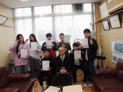 京キッズRUNに出場した7名に記録証の授与式をしました。