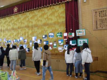 作品展で、全校児童の作品を鑑賞しました。とても素敵な作品ばかりで、みんな思い思いに鑑賞していました。