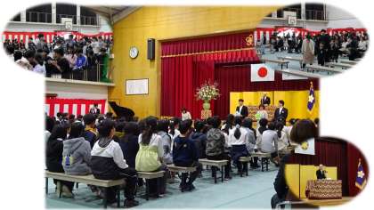 6年生に手を引かれて入場する1年生。少々緊張しながらでしたが、落ち着いて入場していました。6年生もやわらく1年生に関わってくれている姿はとてもほほえましかったです。式の中では、6年生がしっかりと国歌と校歌を歌ってくれたので、メリハリのついた式となりました。在校生の代表として、たよりになりました。