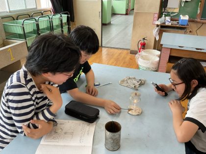「ものが燃えるしくみ」の単元で、実験を行いました。