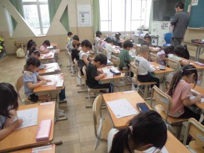 先週から1年生はひらがなの練習が始まりました。もっときれいな字が書けるように毎日1字ずつコツコツがんばっています。大切なのはマスの4つの部屋。「何番の部屋から書いたらいいかな?」みんなで確かめながら練習しています。