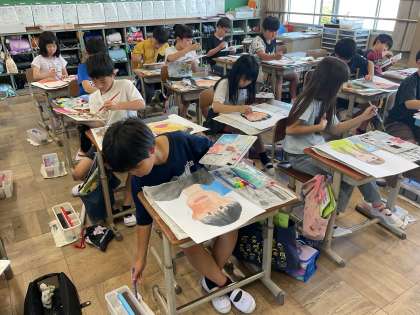 図画工作では自分の顔を描いています!