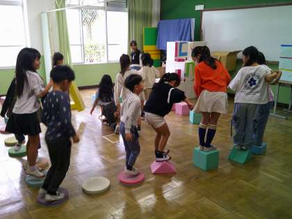 休み時間、他学年の友達もたくさんプレイルームに遊びに来て、楽しく遊んでいます。