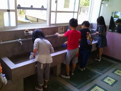 1年生はまだ水で練習ですが、虫歯にならないために毎週おこなっていきます。
