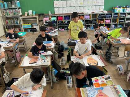 図画工作科で取り組んでいる「わたしの顔」が