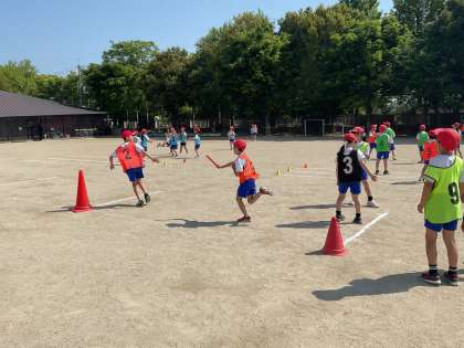 いい天気の中、リレーに取り組んでいます!