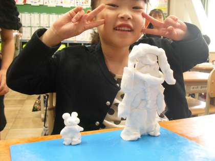 今日の1年生の図工の学習は粘土を使いました。今日のテーマは「おさんぽ」です。自分と一緒にお散歩している友だちや生き物を作りました。家族やハムスター、恐竜、へびなどお散歩したい相手がみんな違っておもしろい!楽しい作品作りの時間になりました。
