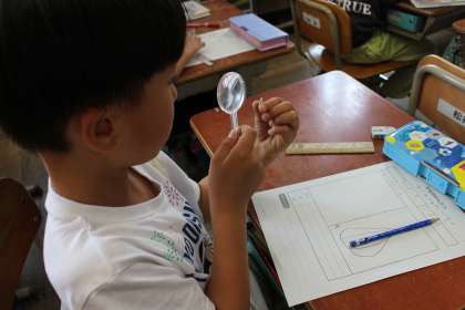 虫メガネを使って細かい模様や形を観察しました。