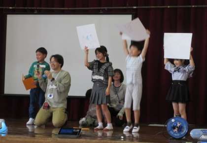 今日は、川岡小学校で、中学校区4校での「入学をお祝いする会」がありました。小学校1年生と中学校1年生の入学をお祝いし、みんなで楽しく活動しました。新入生のクイズでは、なかよし学級の1年生も、ステージの上で堂々と発表できました。その後、みんなでダンスをしたり、人数集めゲームをしたり、電車ごっこをしたり、バルーンをしたりして楽しみました。子ども達は、久しぶりに、中学生になった卒業生に会えたのも嬉しかったようです。