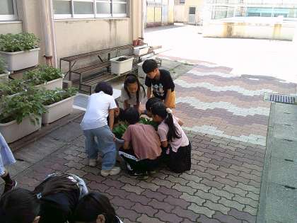 理科の学習で、モンシロチョウの卵を探しました。