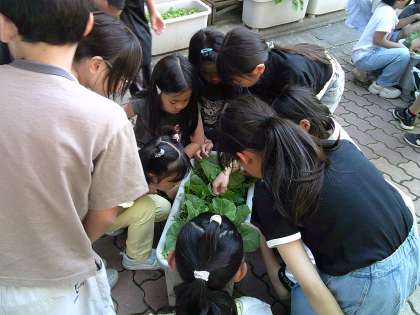 以前から、育てていたキャベツの葉をみんなでじっくりと観察をしました。