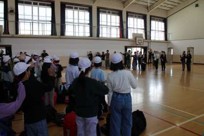 見送りに来ていただいた保護者の方へ、少し恥じらいながら「行ってきます!」と挨拶していました。