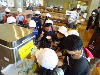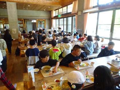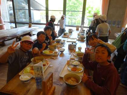そこで待ちに待った、昼食タイム!食堂に集合してお昼ご飯を食べました。