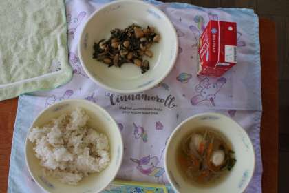 今日は「肉みそいため」「春雨スープ」でした。