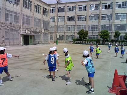 リレーの学習ではバトンパスの際にリードをすることを取り入れて学習をしています。