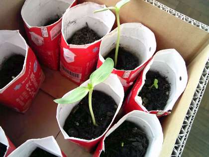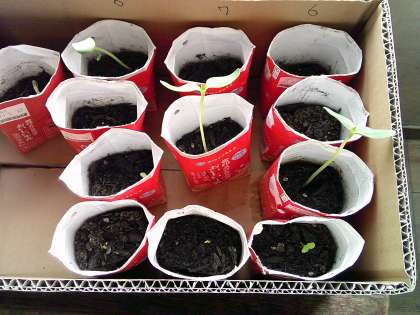 理科の学習で育てているヒマワリとホウセンカの芽が出ました。