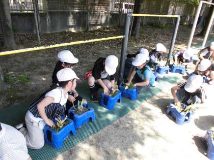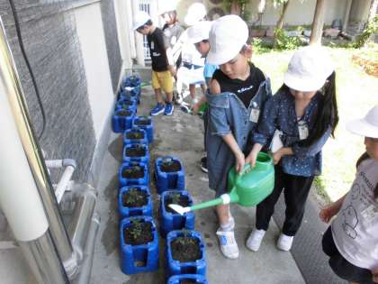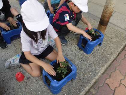 生活科の学習で、「ミニトマト」の苗を植えました。