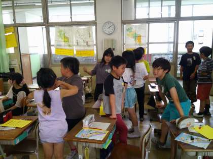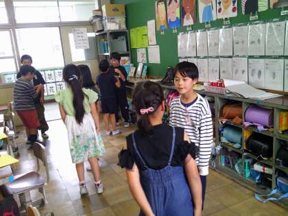 外国語活動で、晴れの日や雨の日の遊びについてそれぞれたずね合いをしました。