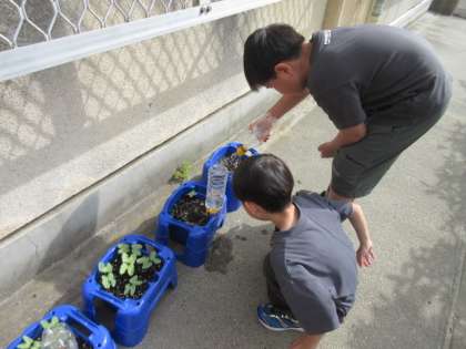 なかよし あさがおの芽がでました