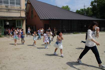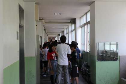 各教室で火災時の避難の仕方や「お・は・し・も・て」など、避難するときの注意点を事前に確認しました。
