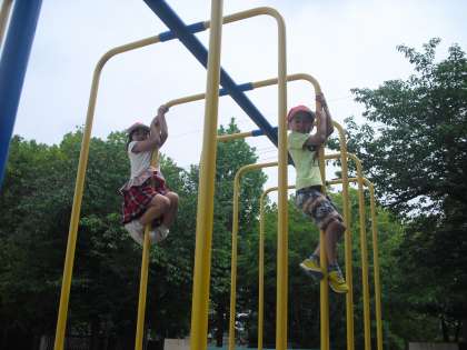 1年生の休み時間は色んな遊具で遊んでいます。最近はのぼり棒で上まで登れる子も!鉄棒でできる技が増えたり、雲梯で遠くまで行けるようになったり・・・成長の早さに驚かされます。