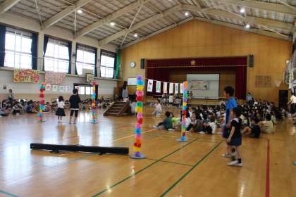 6年生と手をつないで入場し、2年生が作ってくれたアーチをくぐり、台の上で名前を呼ばれたら大きな声で返事ができました。