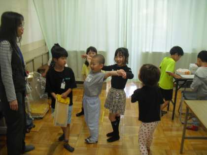 今日は皆が楽しみにしていた学校探検の日でした。学校に詳しい2年生に連れられて、普段はいけない教室の中まで紹介してもらいました。「理科室にメダカの赤ちゃんがいた!」「音楽室には学期があった!」など、新しい発見ができた1日でした。