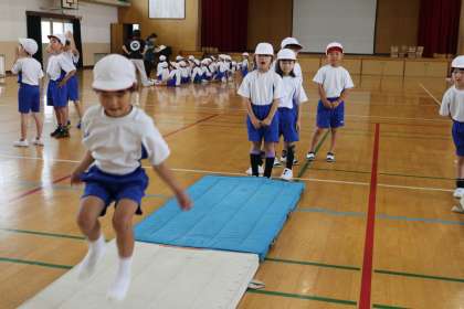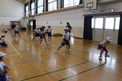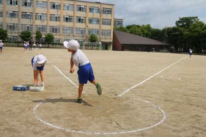 2年生はソフトボール投げと反復横跳び、立ち幅跳びをしました。
