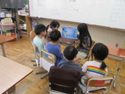 6月4日の様子です。図書の時間に3、4年生の子どもが、他の子たちに絵本の読み聞かせをしてくれました。読んでいる子たちは、聞いている子たちに話しかけながら、とても上手に読んでくれました。聞いている子たちも、楽しそうに、読み聞かせが終わるまで、じっとその場で聞いていました。とても微笑ましい時間でした。