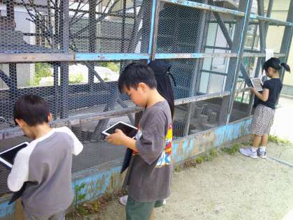今日の生単の時間、運動場のお気に入りの場所をタブレットで写真に撮りました。