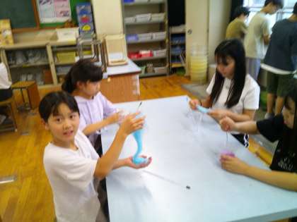 ホウ砂の量で硬さが変わるため、色々と試しながら、好みのスライムを作っていました。