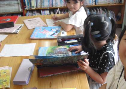 今週は図書委員の6年生からプレゼントがありました。その名は読書ビンゴ!「昔話」や「図鑑」、「動物が出てくる本」など、お題に合った本を読んでビンゴを埋めていきます。全部埋めるとしおりのプレゼントもあるそう。「先生、図鑑どこですか?」「詩のある本ってどれですか?」と色んな種類の本に興味を持って、図書館の学習を楽しんでいました。