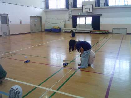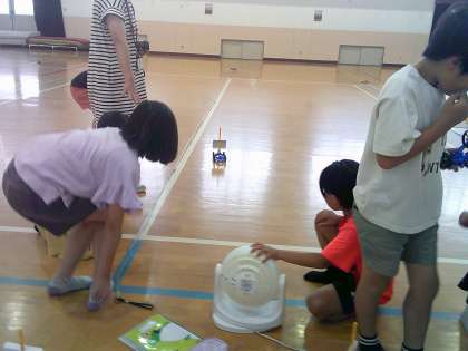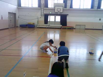 目には見えませんが、風の力で進む車の動きが面白かったようです。