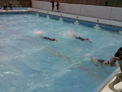 ねらい2ではプールの横を使って、けのびの練習をしました。
