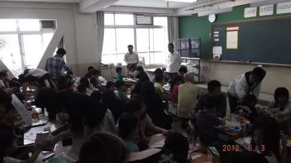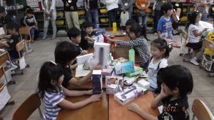 図工は,空気を入れてふくらませて,にょきにょき飛び出すもの作り。ロケット,うさぎ,かえる,おはな,さかな・・・それぞれが作った箱から,イメージした飛び出すものをかきました。袋にストローをつけて・・・うまく飛び出したかな?
