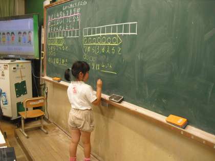 先日たし算の学習を終えて、ひき算の学習が始まりました。算数のノートにも慣れてきて、図や言葉で、答えの求め方をまとめることができるようになりました。黒板でも正しく書くことができます。これからもきれいにまとまったノートを期待しています。