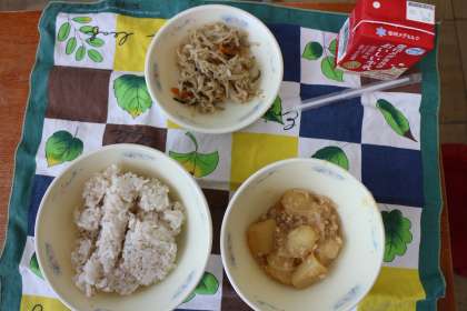 今日は「じゃがいものそぼろ煮」「切干大根の三杯酢」でした。