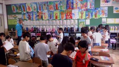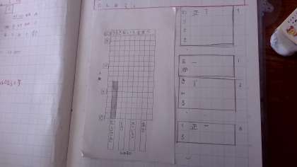 授業の後半では、学習をしたことをいかして、クラスの友達に好きな物をインタビューして自分が調べたい内容を棒グラフにしました。