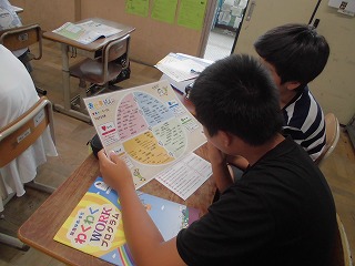 阪急電車のまわりにある仕事の種類などを紹介してもらった後、自分たちの興味があることや好きなものをチェックするシートを活用して、興味につながる仕事はどんなものがあるか、ワークブックやお仕事マップを見ながら、探してみました。