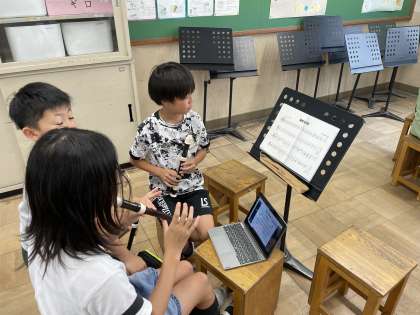 班でタブレットから流れる演奏と一緒に練習したり重ねてみたり