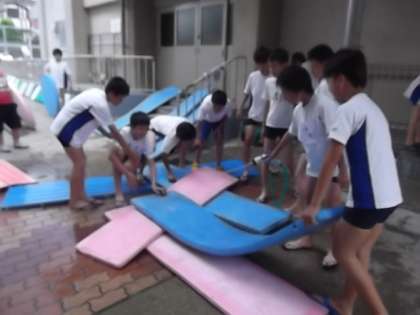 プールだけでなく,更衣室やプールに使う道具も一緒にきれいにしました。